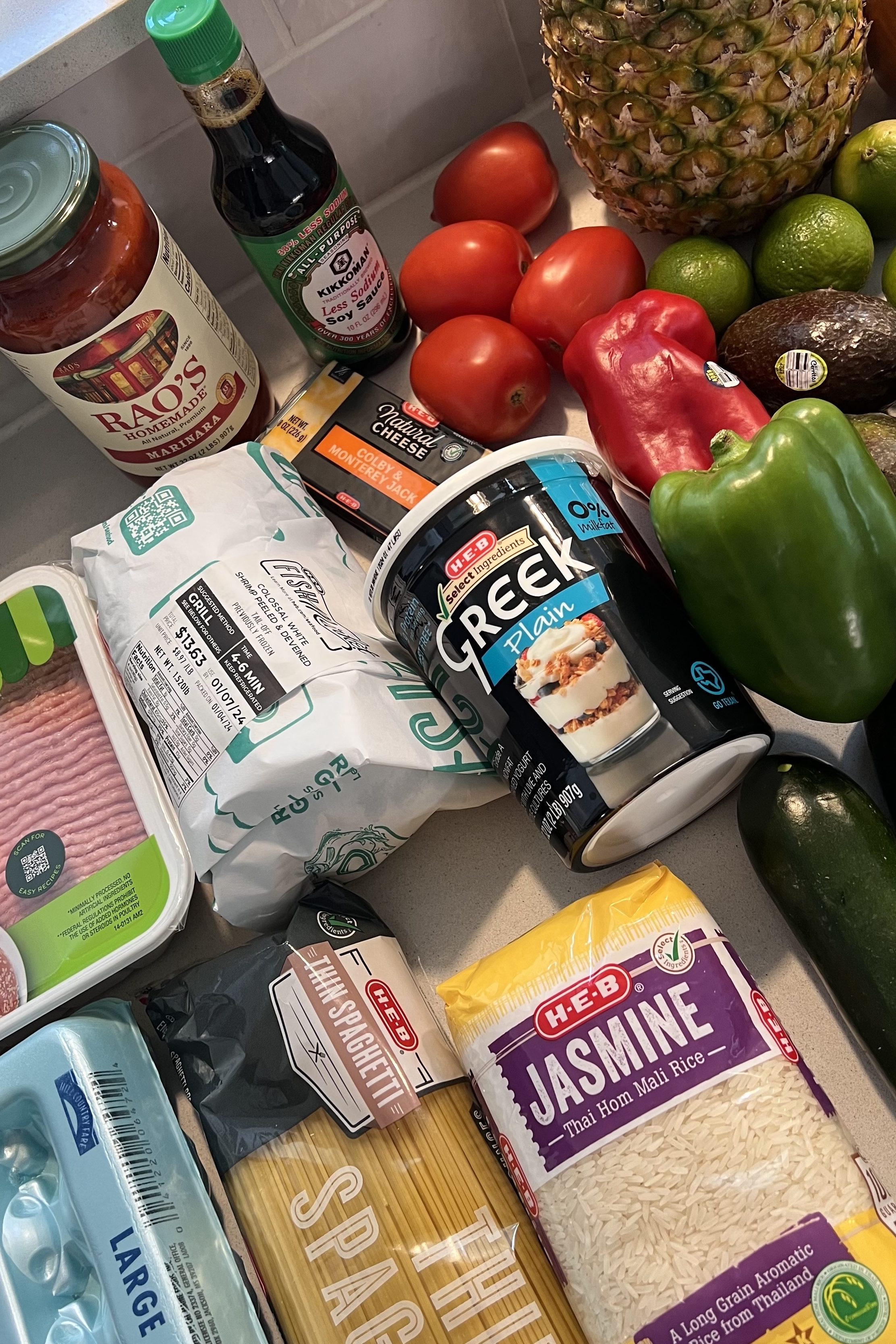 NOTE: I did buy more than one of a vegetable or fruit because it was either on sale OR because one for the whole week wouldn’t last. And I’m also not counting olive oil or seasonings that i use to make the meals because I already have them in my house.